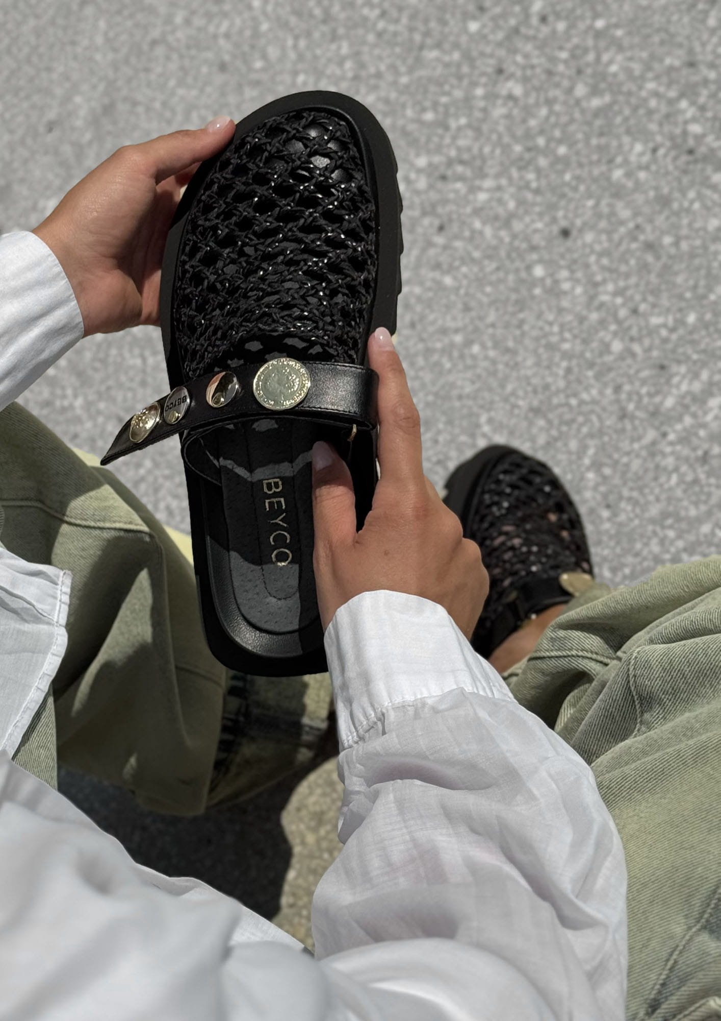 Step into style with this unique slip-on design, crafted from natural leather and breathable mesh.