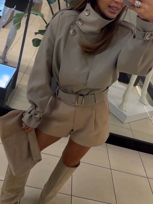A waistband accentuates the silhouette, combining comfort with modern design.