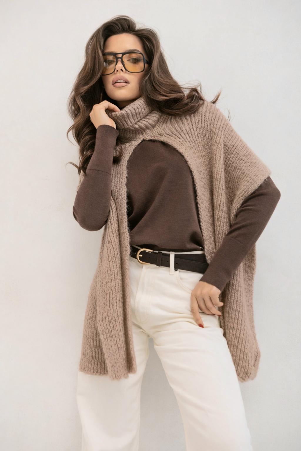 A soft, knitted scarf with a bold, chunky weave that wraps beautifully and adds a sense of relaxed, modern elegance to any outfit. Its wide cut allows it to be worn both in a classic way or casually draped over the shoulders.