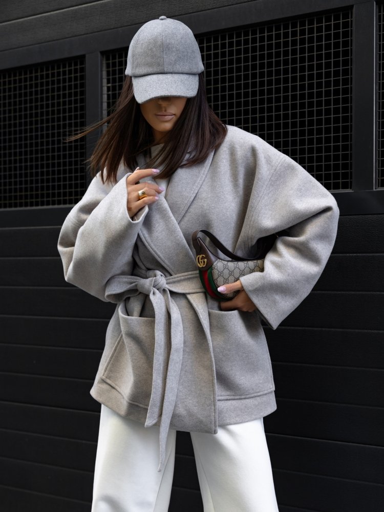 A timeless light grey coat designed for effortless elegance and everyday comfort. Crafted from a soft, high-quality fabric with a refined texture, this coat features a relaxed silhouette and a classic shawl collar that beautifully frames the neckline. The adjustable waist tie allows you to define the shape and tailor the fit to your style.