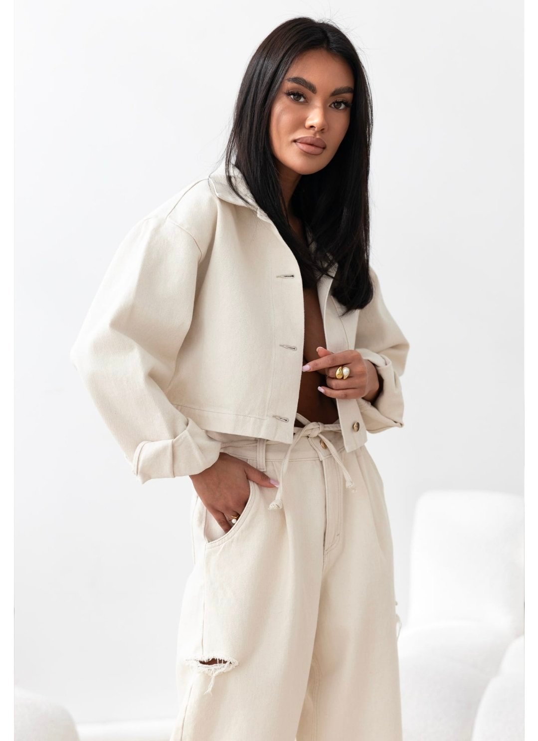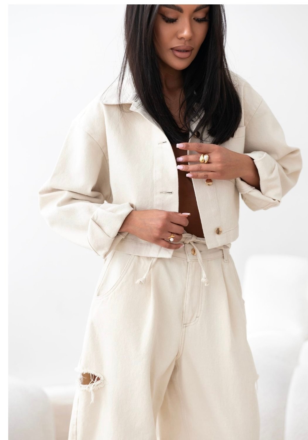Cropped denim shirt. With one pocket. Logo buttons. 100% Cotton. Shirt contains recycled cotton.