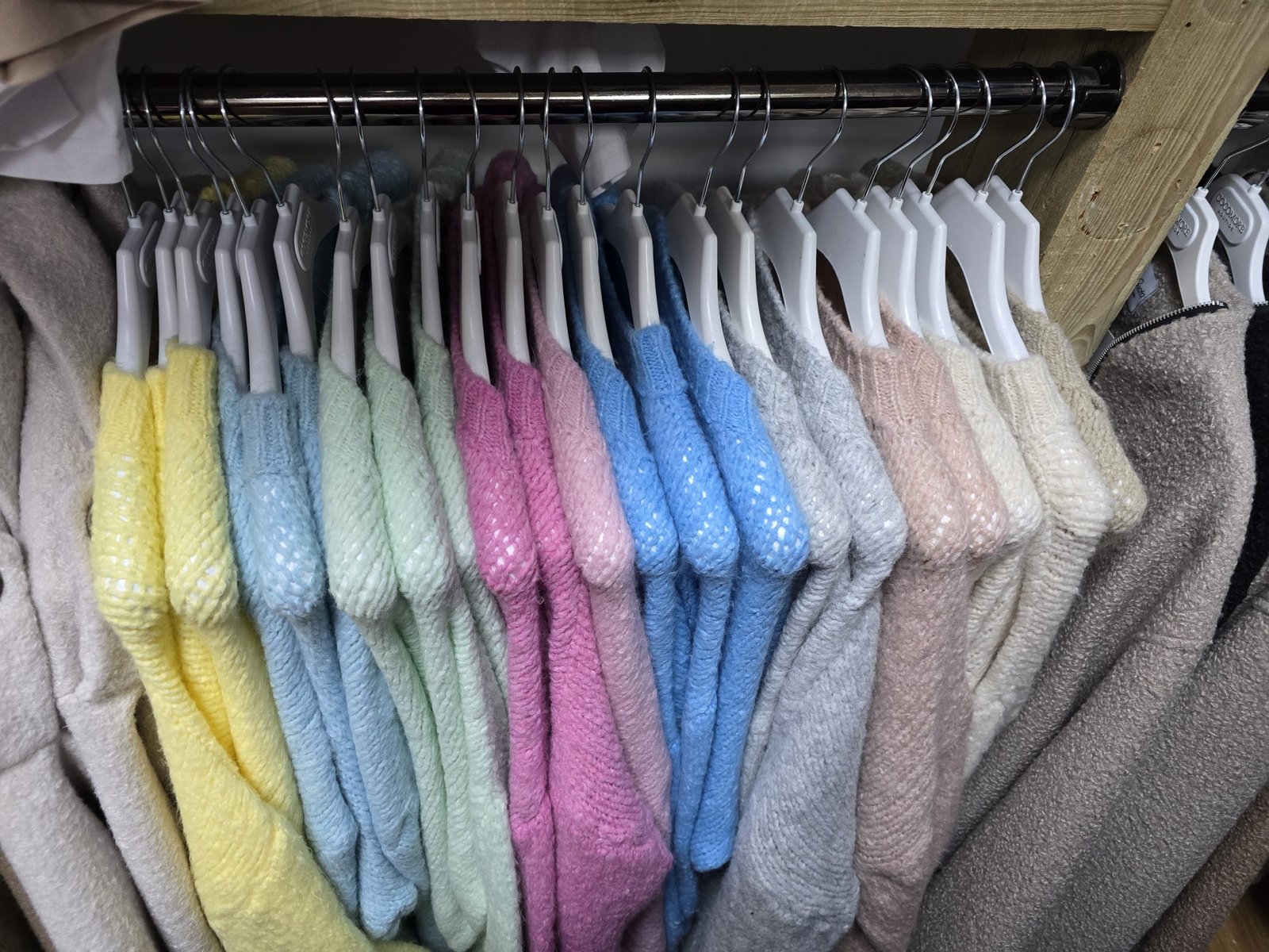 – wider, semi-circular neckline that can be pulled down to one shoulder,