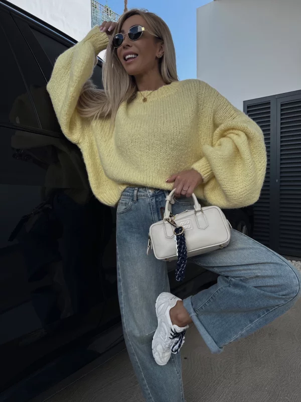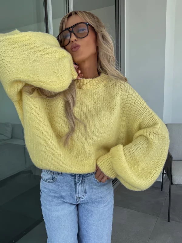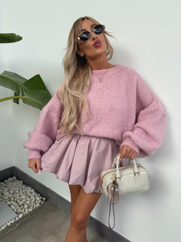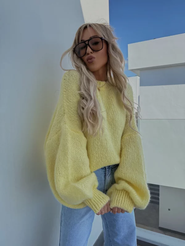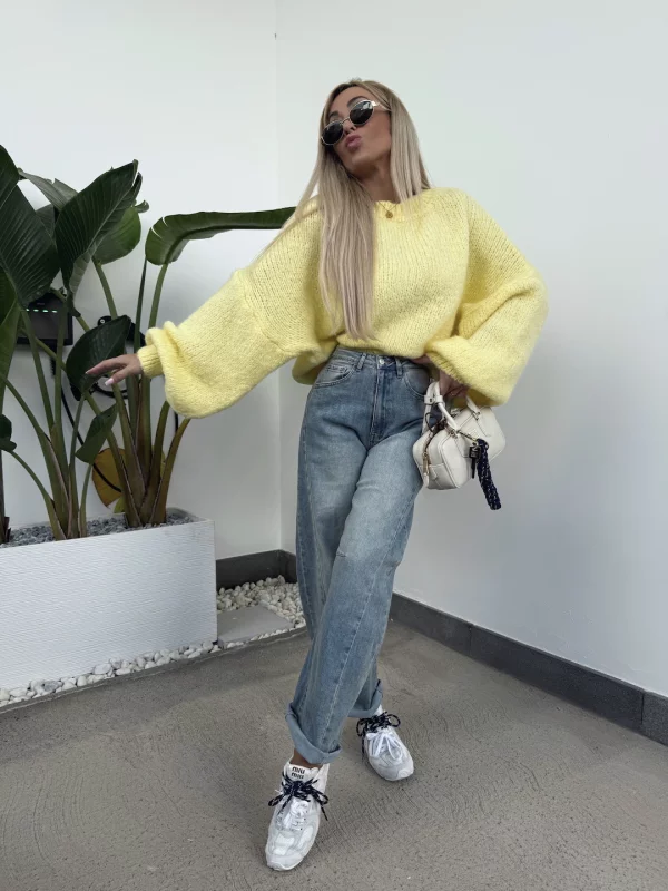– lowered shoulder line, – puffed sleeves with elastic at the bottom