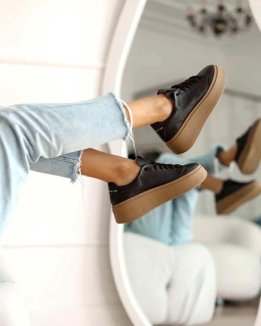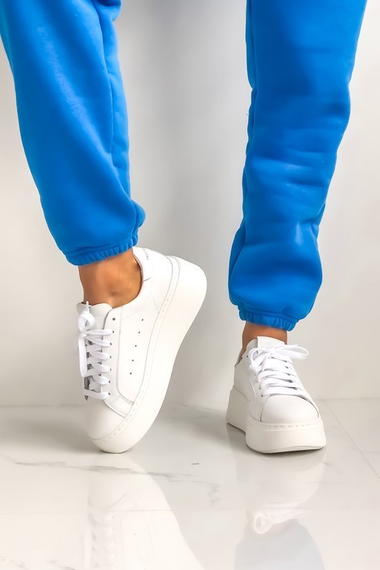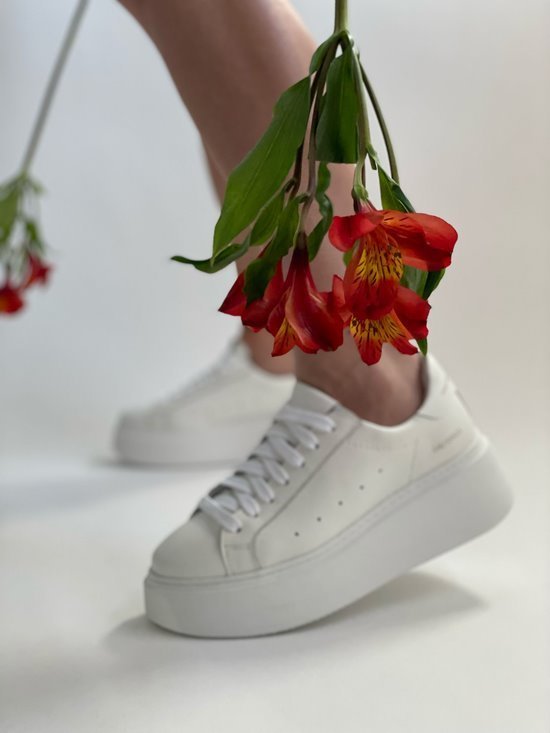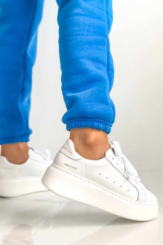 The iconic model of sneakers on a thick bottom – platform. Made of the best quality natural leather. The beautiful white color perfectly matches any outfit. Accent in the form of a golden inscription.