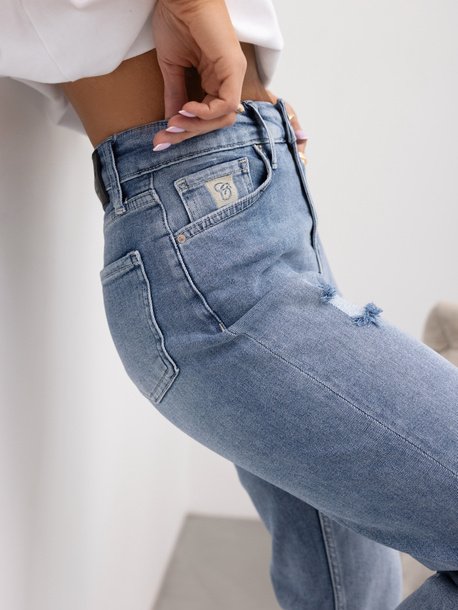 These high-waisted, tapered jeans are a hit this season! Stylish distressing at the hems adds character, and the slim fit flatters your figure. Perfect for everyday wear – slip them on and feel confident!