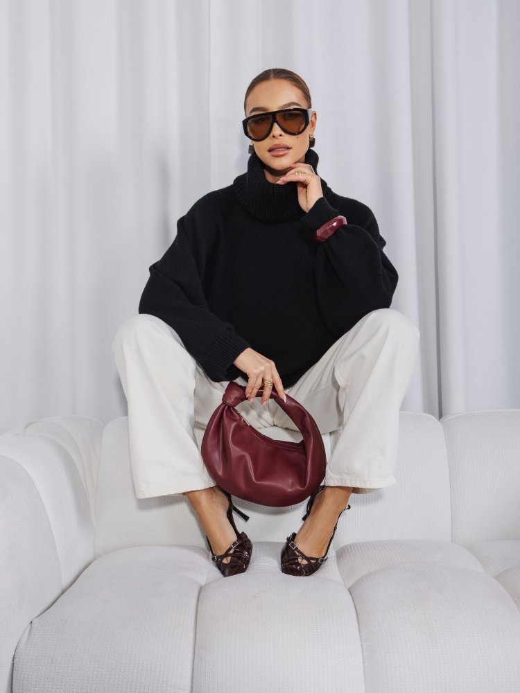 The design is finished with ribbed trims that subtly balance the loose fit, while the generous roll neck adds both comfort and a refined, modern touch. Versatile and elegant, this sweater pairs beautifully with both casual and more elevated looks.