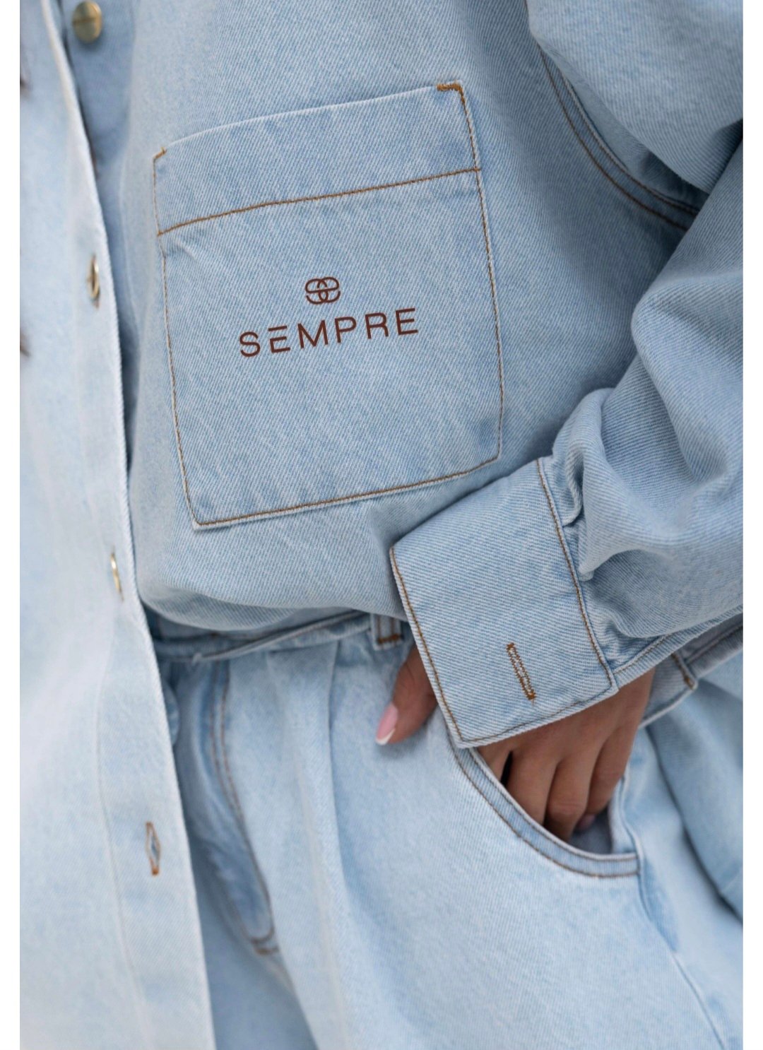 Oversize shirt. Denim. Logo on pocket. Perfect complement to our denim trousers.