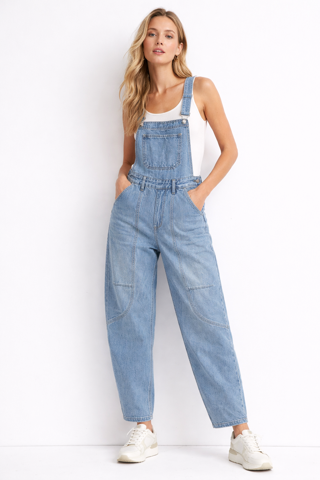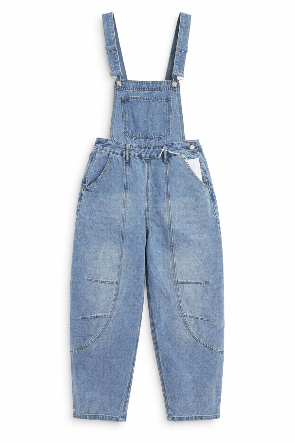 Stylish and modern denim overalls designed in a trendy barrel-leg silhouette, offering a relaxed yet flattering fit. Made from high-quality denim with a slightly stretchy fabric, they provide comfort and ease of movement while maintaining their shape.