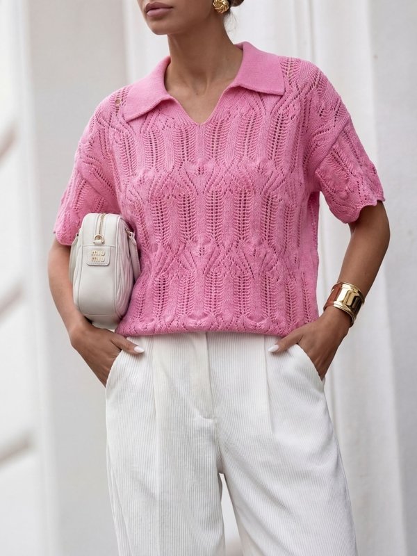 A stylish sweater with a light, airy structure that combines elegance with everyday casual comfort. The subtle weave and classic collar give it a unique character, making it a perfect complement to both casual and more refined outfits.