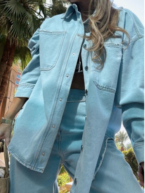 This oversized denim shirt is made of soft, high-quality denim, ensuring comfort and freedom of movement.