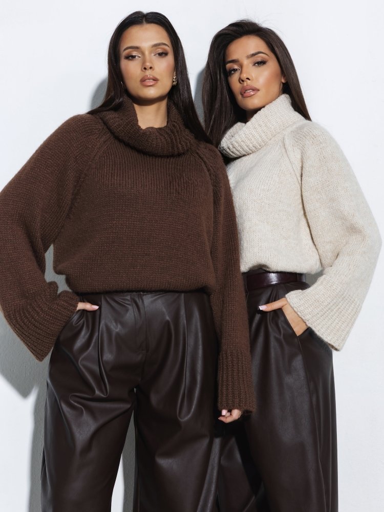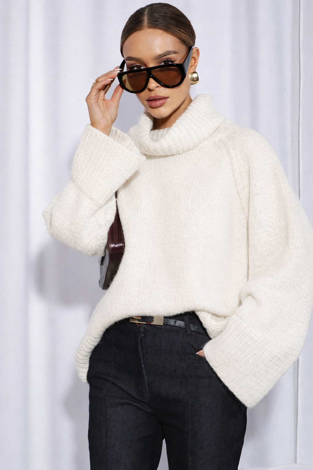 Elevate your everyday wardrobe with this elegant knit sweater featuring a soft turtleneck and a relaxed, oversized fit. Crafted from a cosy, high-quality knit, it offers both comfort and timeless style. The clean cream shade gives a refined, versatile look that pairs beautifully with jeans, tailored trousers, or skirts.