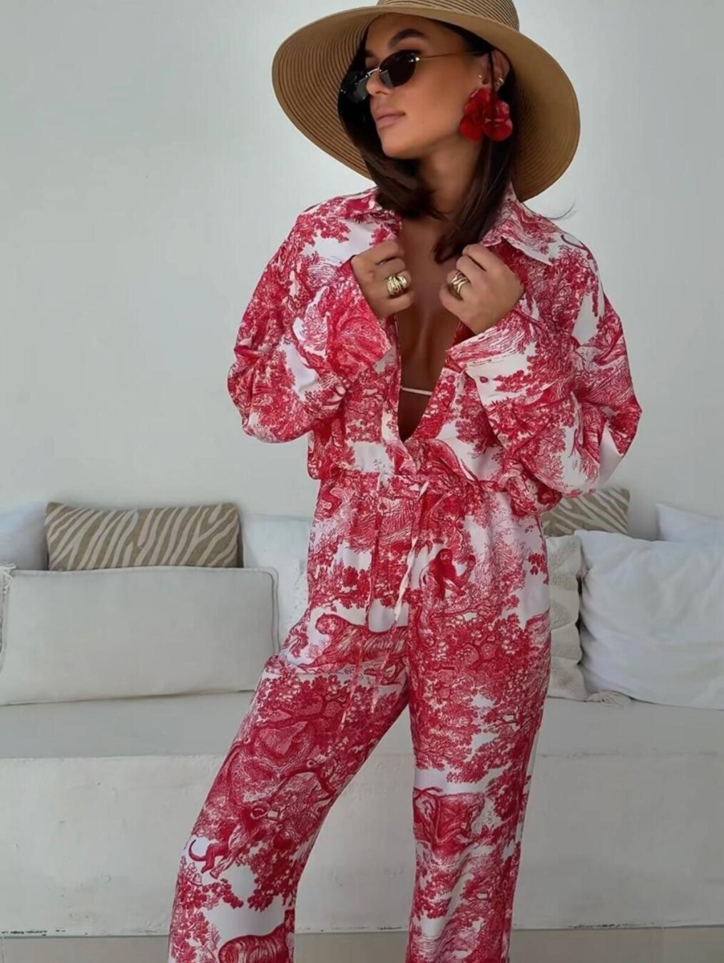 I’ll be honest, I value freedom in my everyday life, but at the same time, I love feeling stylish. This outfit is a bullseye! The loose shirt and high-waisted trousers made of delicate, flowing satin are a true luxury for the skin. Plus, that intriguing pattern – I’m absolutely in love! 🐅🌿