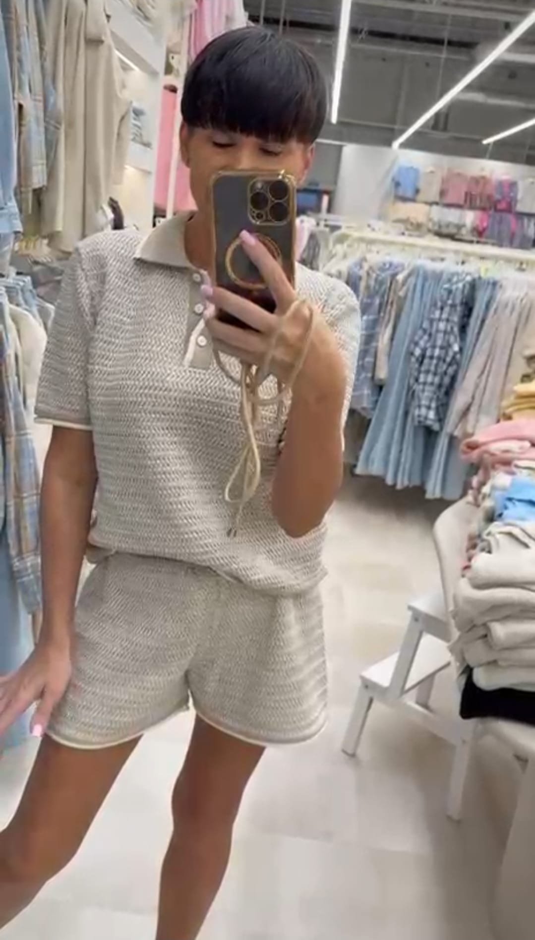 The matching high-waisted shorts are designed with an elastic waistband for a comfortable fit and effortless wear. Their slightly loose cut adds a modern, feminine silhouette while maintaining maximum comfort throughout the day.