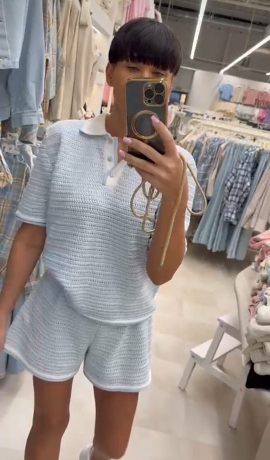 The matching high-waisted shorts are designed with an elastic waistband for a comfortable fit and effortless wear. Their slightly loose cut adds a modern, feminine silhouette while maintaining maximum comfort throughout the day.