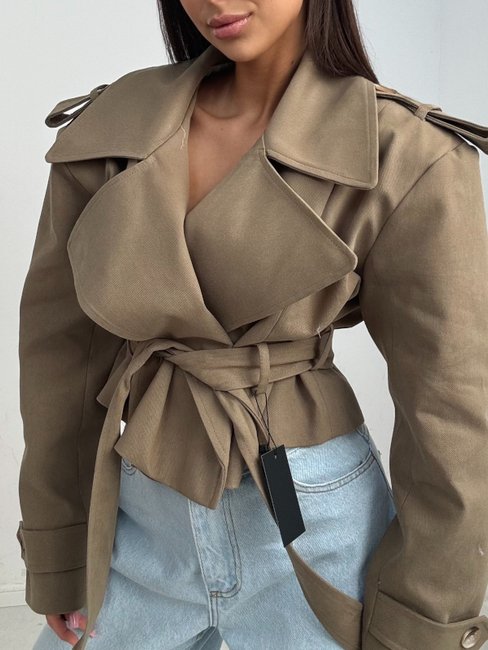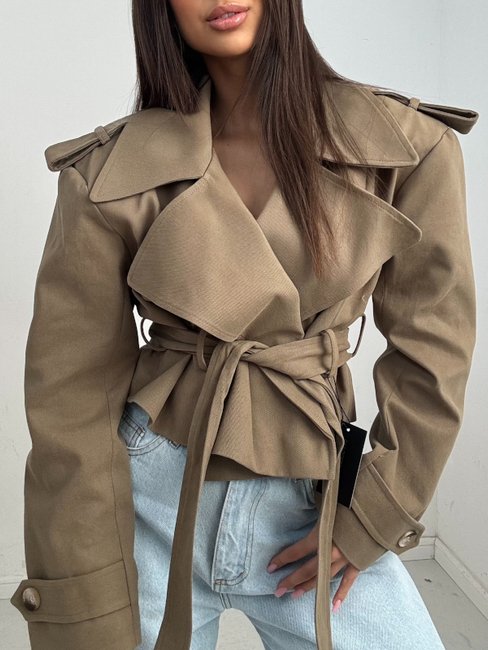 A stylish, short coat in an oversized cut that provides maximum comfort and ease of wear. Featuring a tie belt, it accentuates the waist and adds a modern touch to the silhouette.