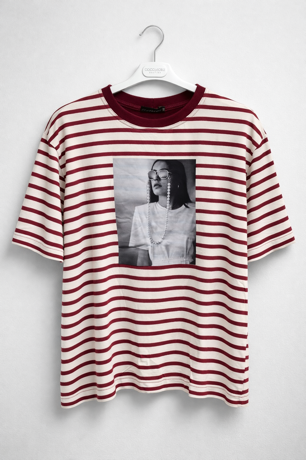 Red & Cream Striped Graphic T-Shirt – Cocomore