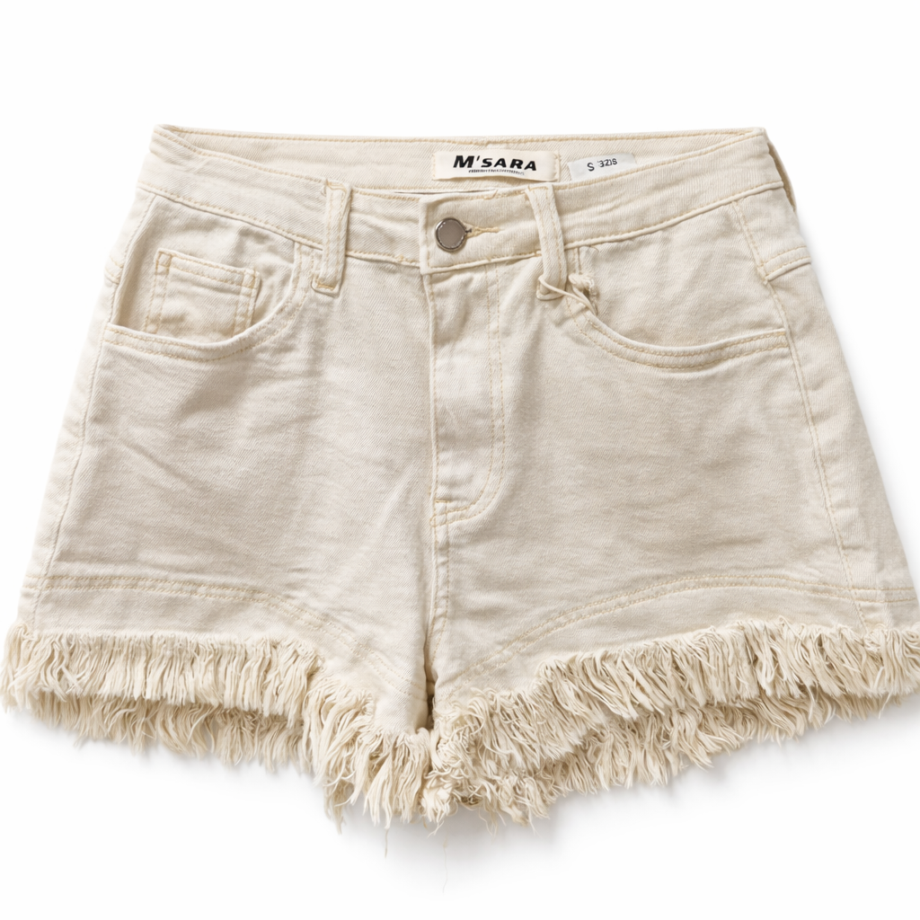 These stylish denim shorts from M Sara combine comfort with a modern casual look. Designed with attention to detail, they feature a flattering high-waist fit, classic pockets, and a trendy frayed hem that adds a relaxed, fashionable touch. The soft denim fabric ensures comfort while maintaining structure and durability, making them perfect for everyday wear during warmer days.