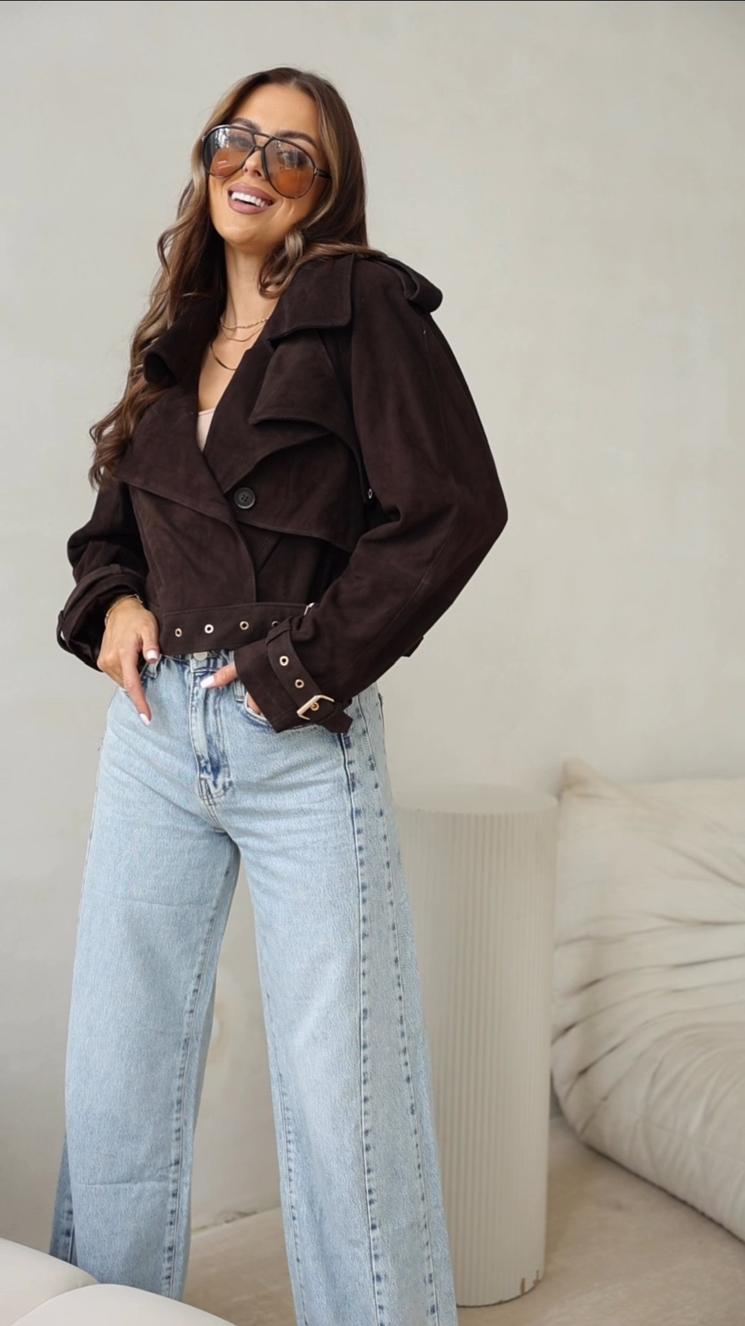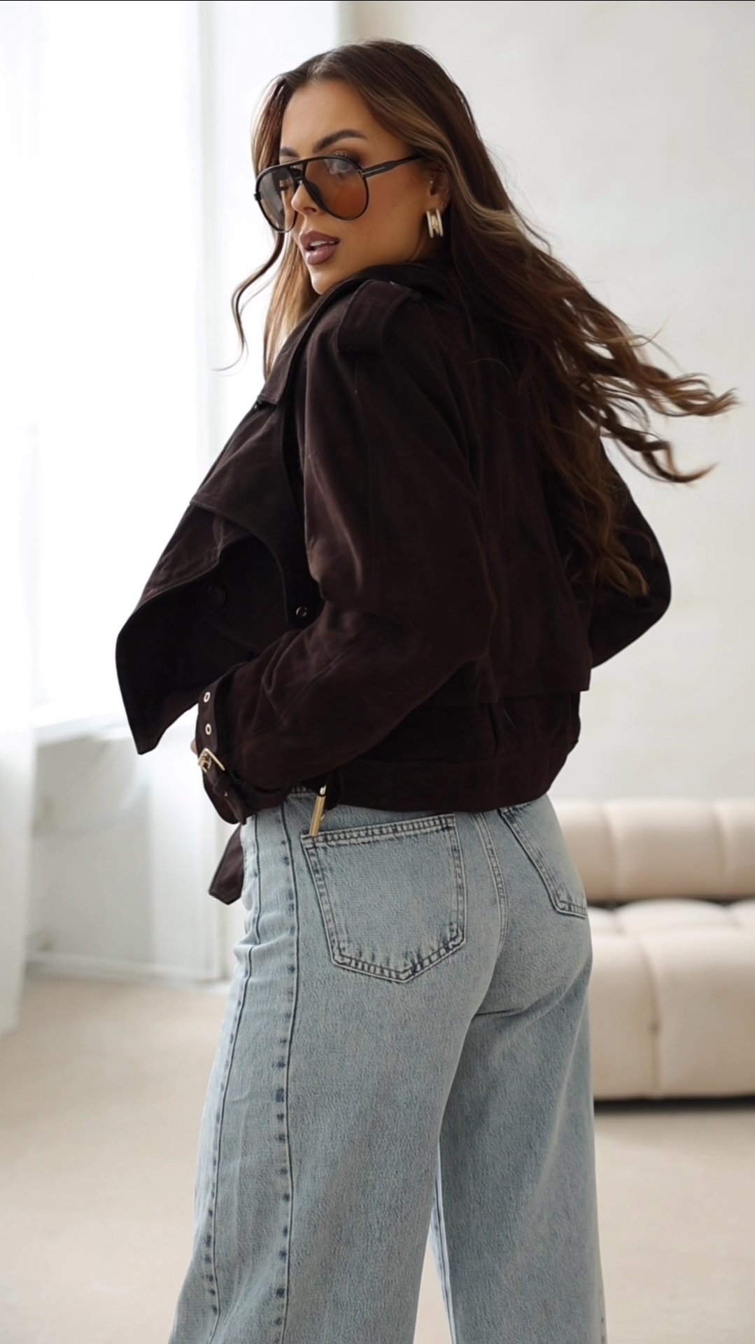 Chocolate Perfection: The Suede Biker Jacket You Need This Season!