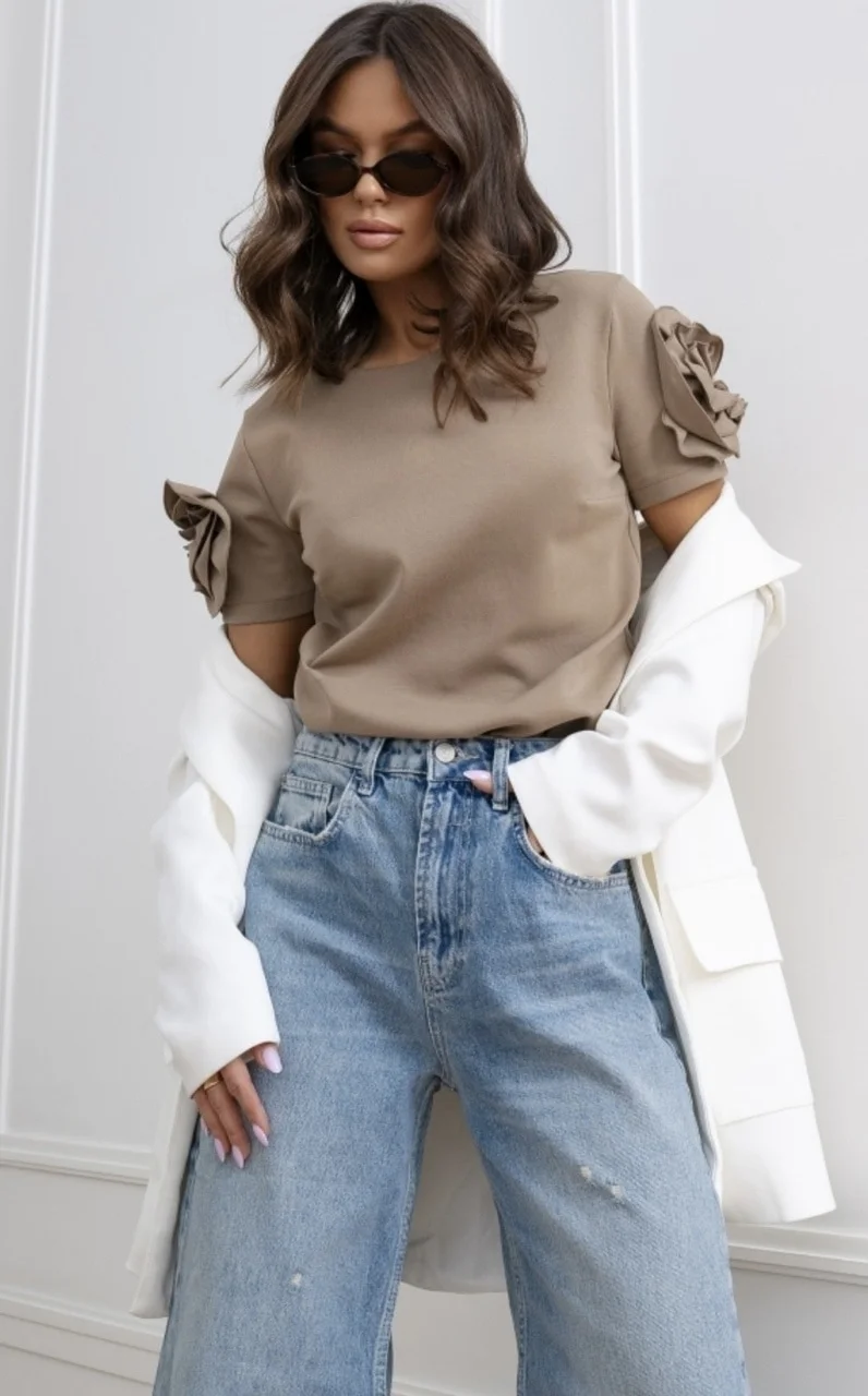 A beautiful classic Cocomore T-shirt with decorative, ruffled sleeves. It’s a great choice for jeans and any spring/summer outfit.