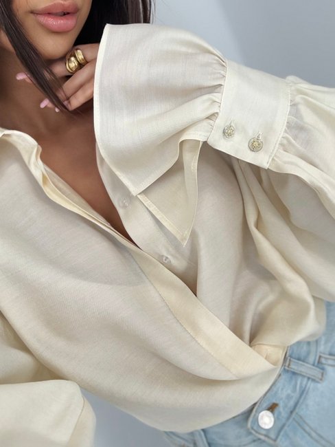 Elegant and effective shirt with decorative buttons impresses with its refined cut – tapered sleeves at the wrists emphasize the slimness of the hands, and the expanding material adds lightness and chic.
