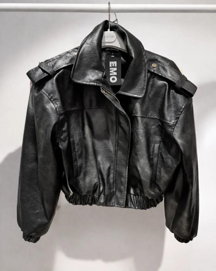 This stylish two-tone faux leather jacket is a unique piece crafted from a special fabric that imitates the natural grain of the material. The oversized cut ensures comfort and a fashionable, casual look.